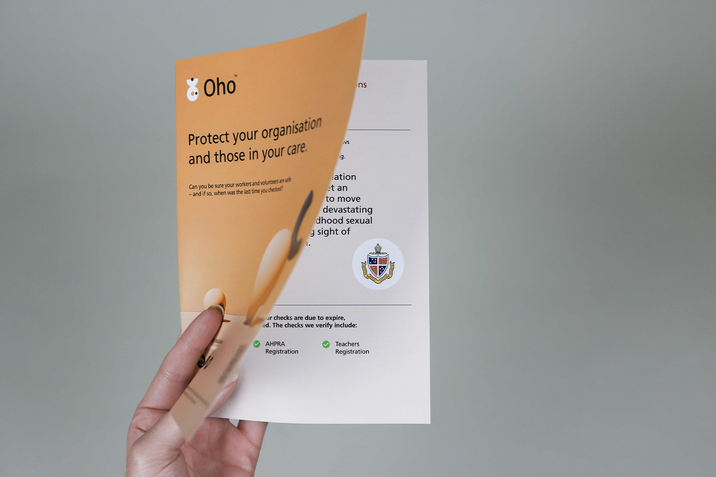 Oho (formerly named Duty of Care), originated because a sexual abuse survivor wanted to protect others. A technology business, Oho enables organisations to continuously monitor the accreditations – such as working with children checks – of their workers and volunteers. To better position Oho to carry out their mission, Ellis Jones’ social impact, communications and design teams helped them rename their company, update their branding, create a new website and launch a marketing plan to strengthen their presence and ultimately, make Australia safer.