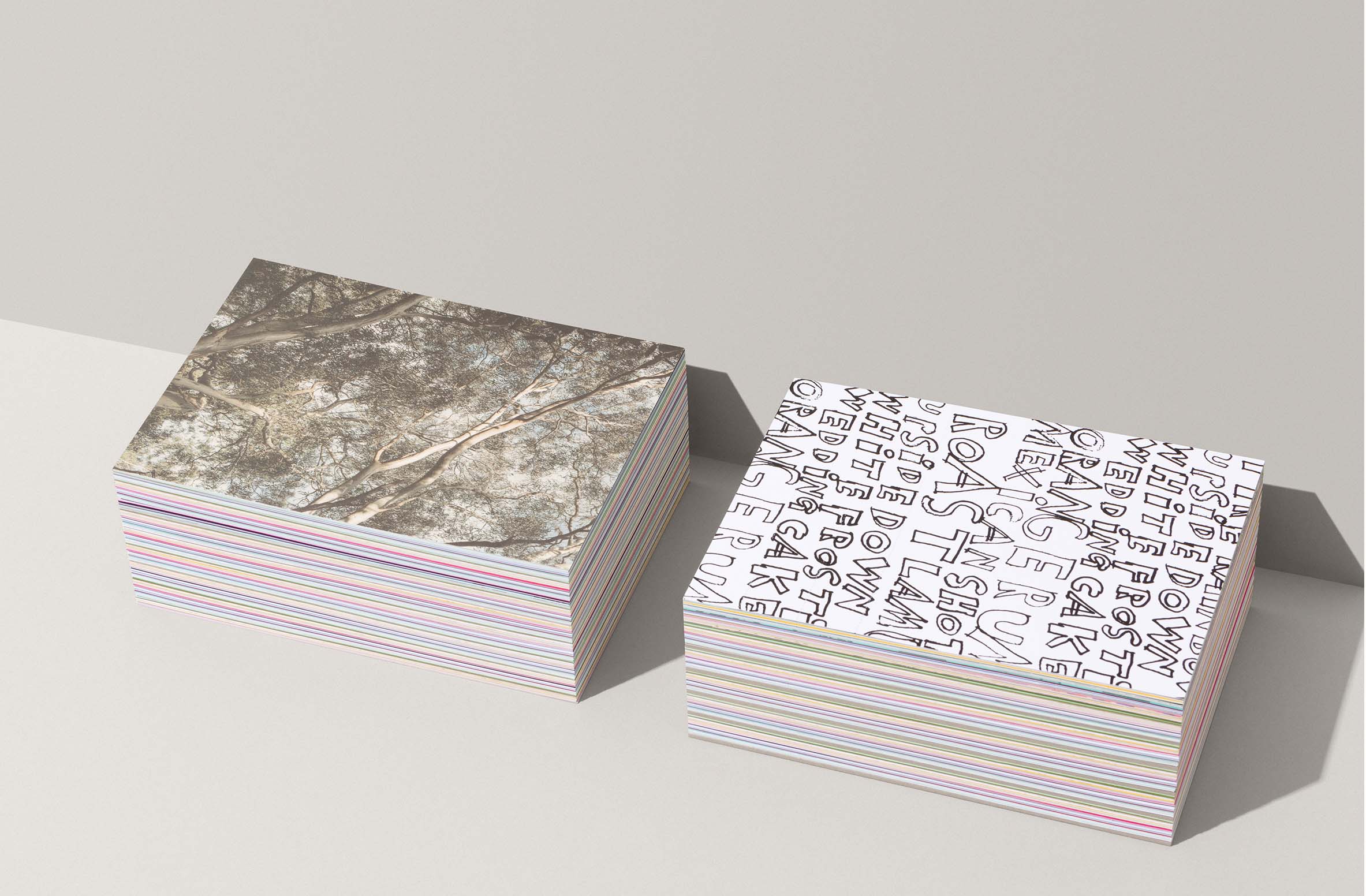 We worked closely throughout the process with the project production partners to experiment with multiple special inks, additional passes, layering of processes and effects, foiling, embossing and finishing to enhance the unique qualities of each artwork. The approach to each of the artworks and cards was unique and tailored to stock, image and concept. There were many configurations that the printers themselves had never tried (and since monetised).